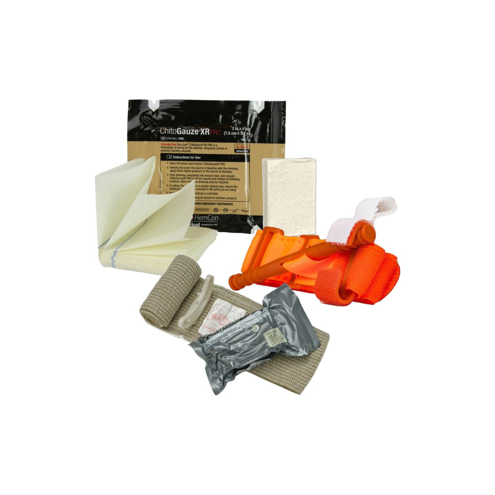 W skład pakietu uzupełniającego wchodzą: opaska zaciskowa CAT (10 szt.), opatrunek hemostatyczny ChitoGauze XR PR (10 szt.), opatrunek uciskowy Emergency Bandage (10 szt.) oraz gaza skompresowana (20 szt.)